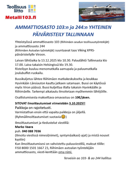 Tervetuloa Riihimäen seudun Teollisuustyöntekijät ry 103:n sivuille